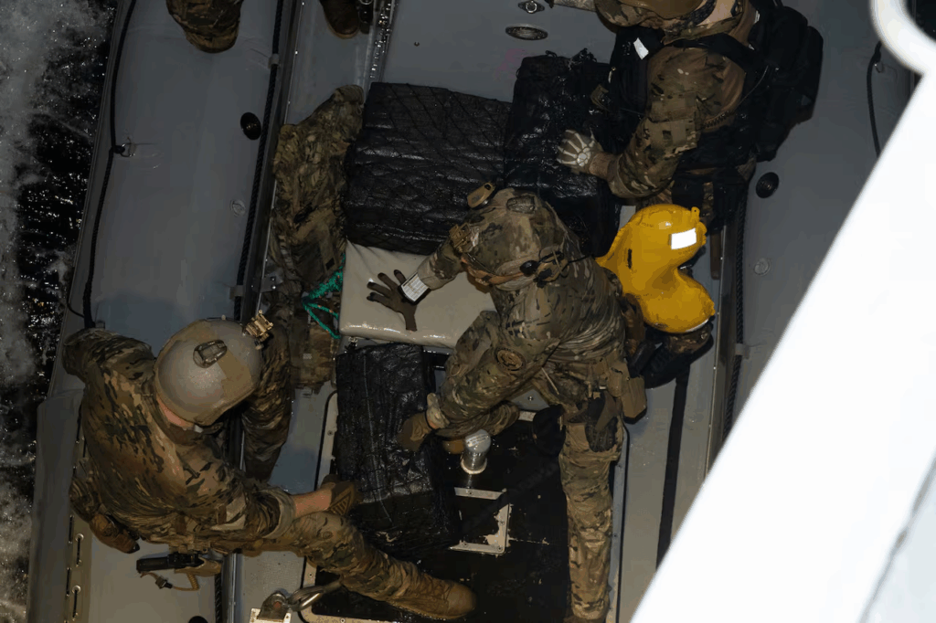 La operación tuvo lugar en aguas internacionales el 11 de agosto, informó el Departamento de Defensa en un comunicado, cuando el destructor salió en persecución de una embarcación que estaba trasladando los fardos de cocaína.