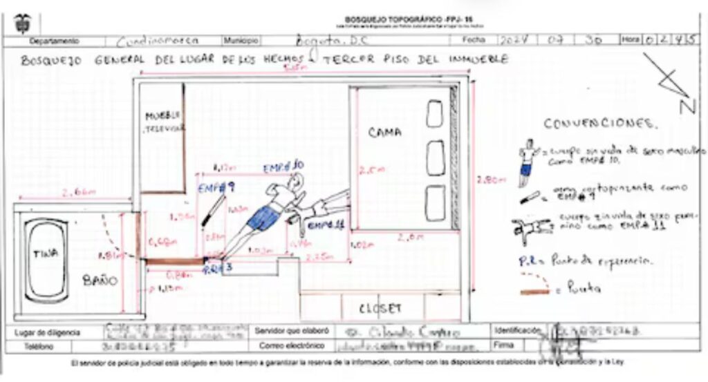 La familia tenía una casa de tres pisos, la número ocho, en un conjunto residencial en el noroccidente de Bogotá. En ese momento, lo que parecía un hogar se convirtió en una escena del crimen. Pasaron algunos minutos y el adolescente regresó a la habitación de sus padres a presenciar la macabra escena que, según su declaración, lo “descontroló”.